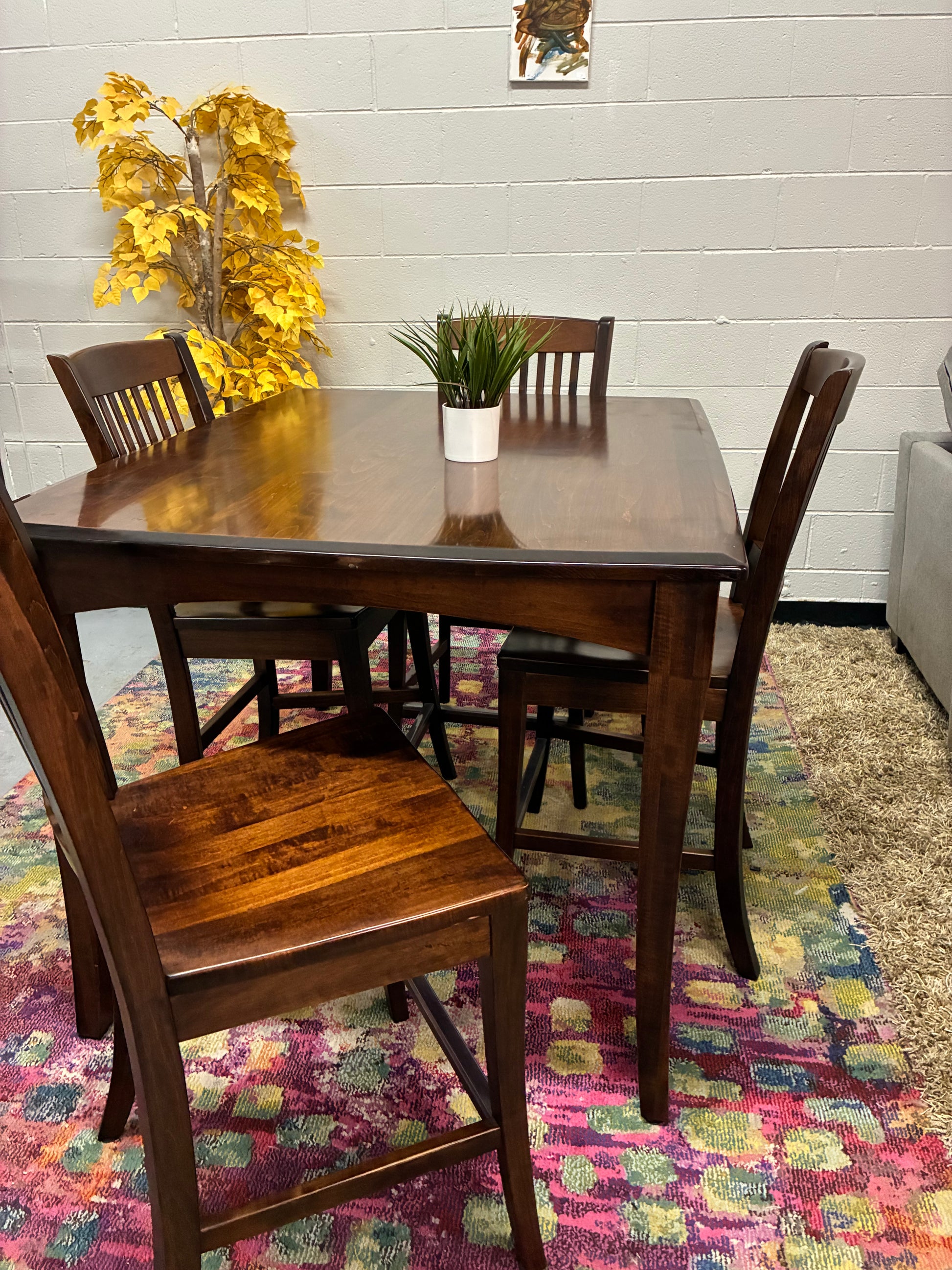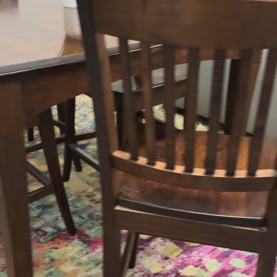 Crafted in the USA by Oakwood Industries, this dining set delivers exceptional quality and timeless design. Built from solid hardwood with a deep espresso finish, the set includes a rectangular table and four matching chairs. With its sturdy build and elegant style, this piece adds warmth and sophistication to any dining space.