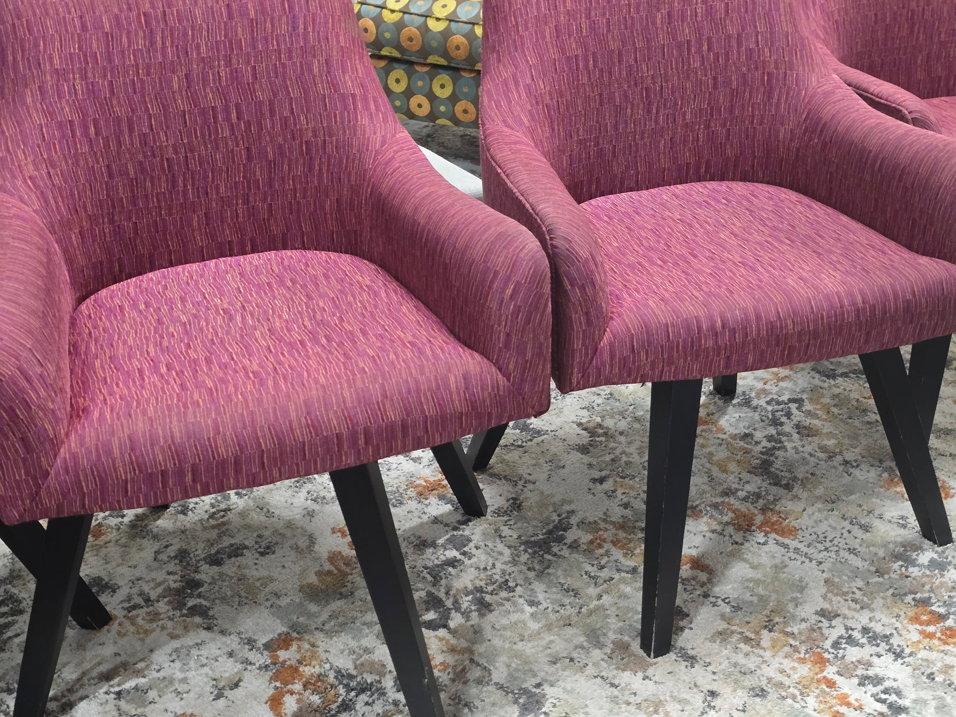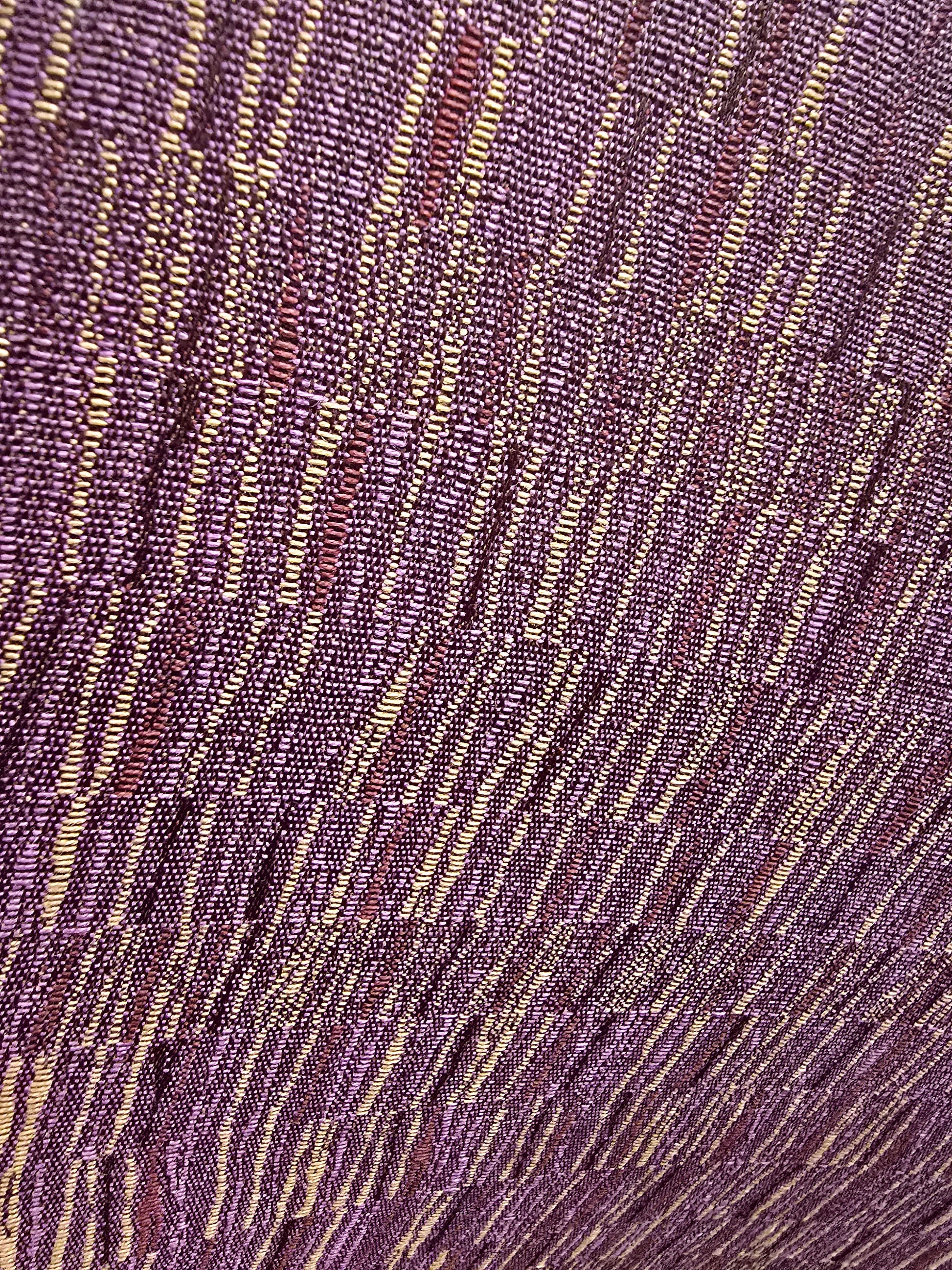 ✔️ Upholstered in rich plum-burgundy fabric with subtle gold and red woven accents