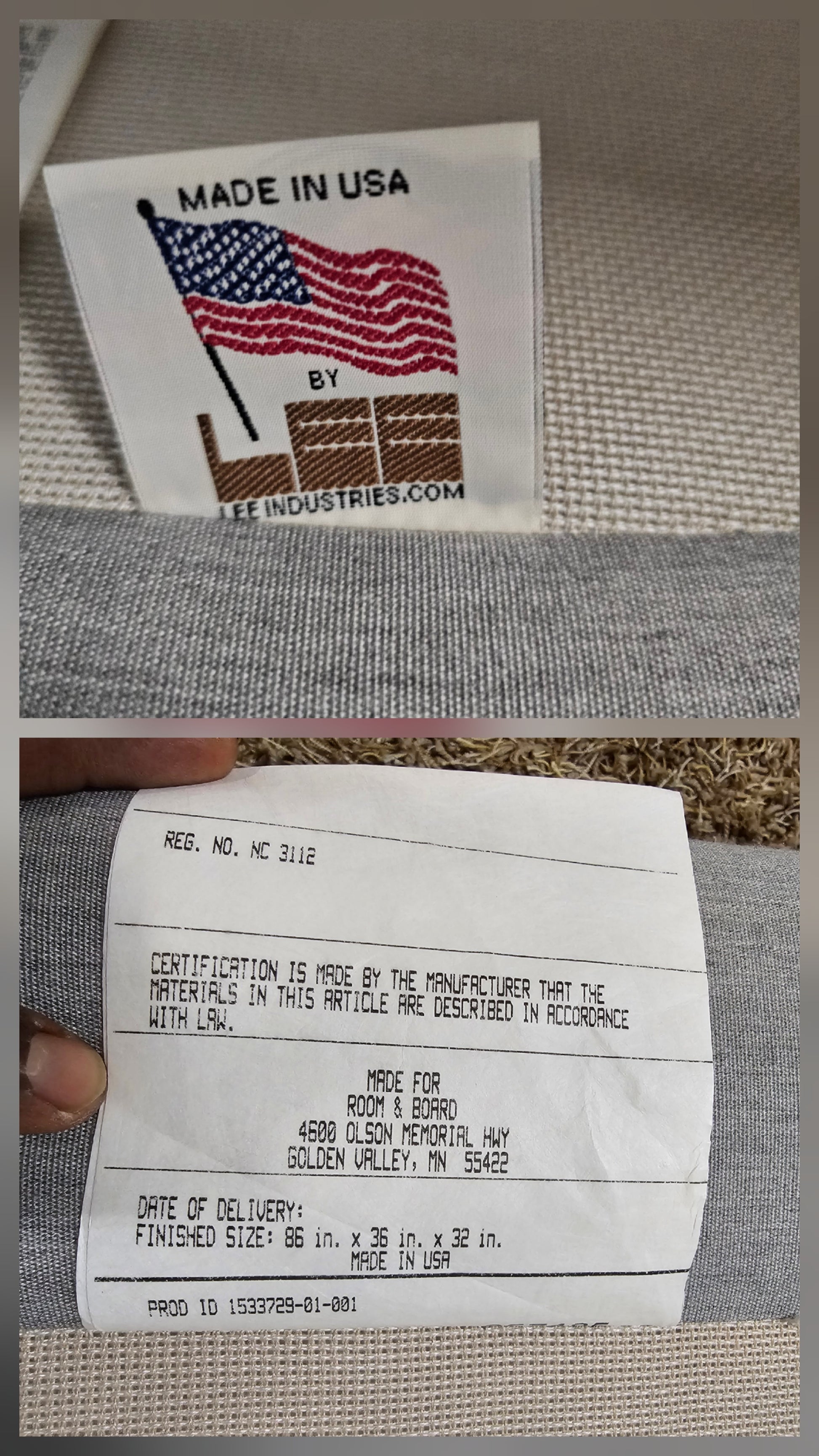 Elevate your living space with this premium Room & Board sofa, handcrafted in the USA by Lee Industries. Known for exceptional comfort and timeless design, this piece blends modern style with lasting quality.