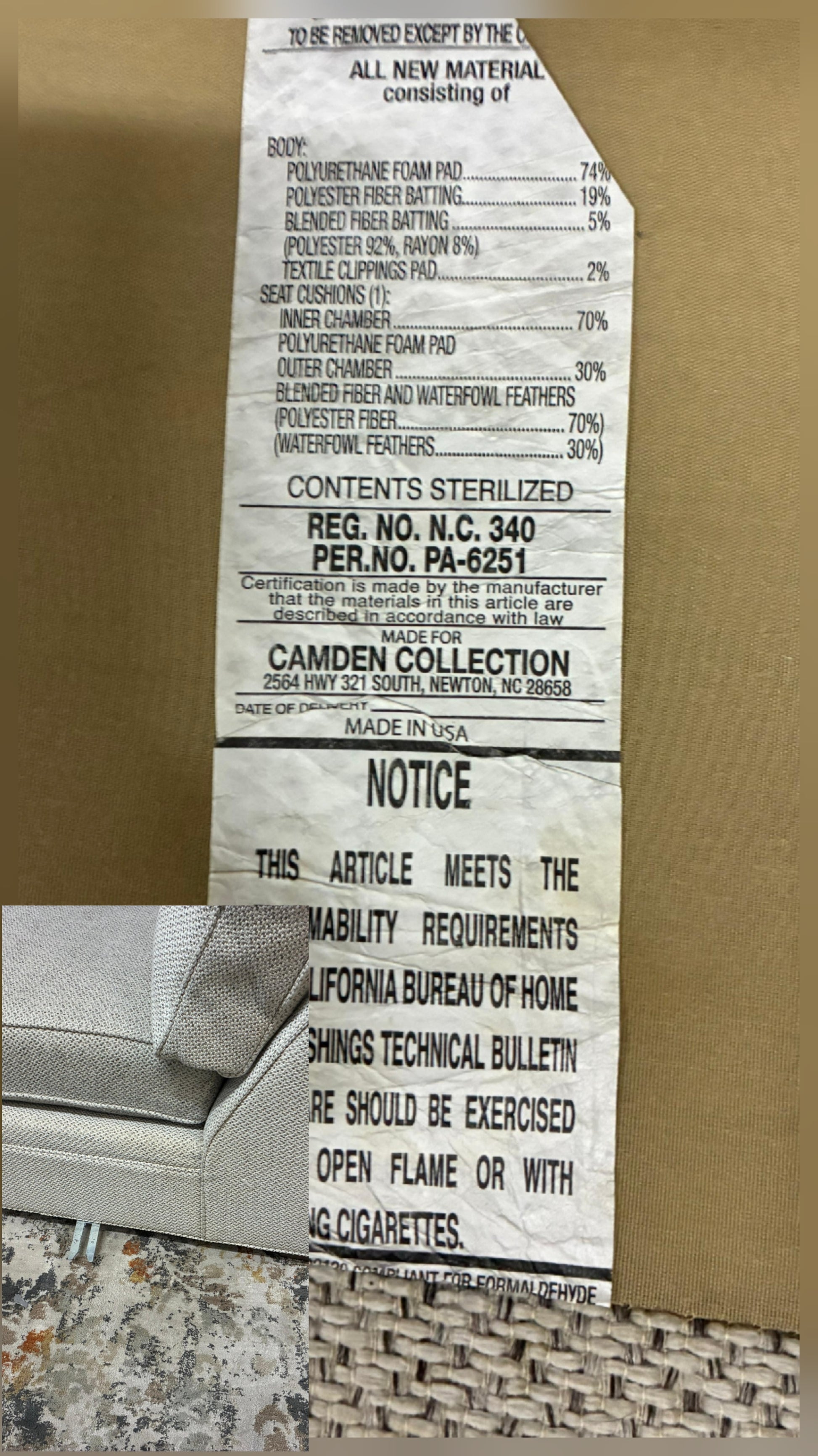 Camden Collection Beige Sectional – Rolled Arms | Made in USA