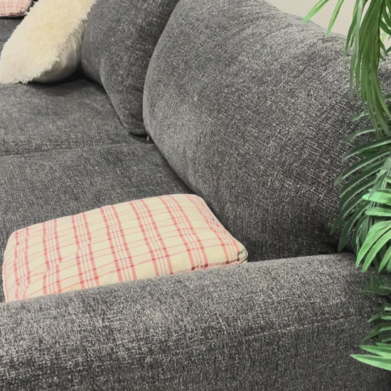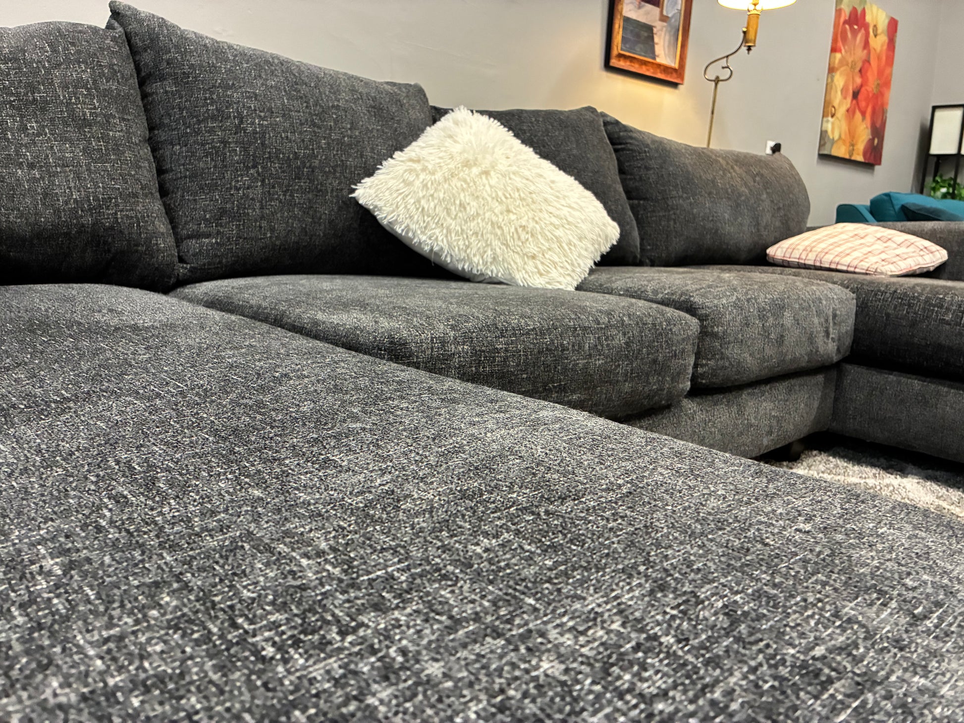 - Charcoal gray woven fabric ā pet-friendly and easy to maintain